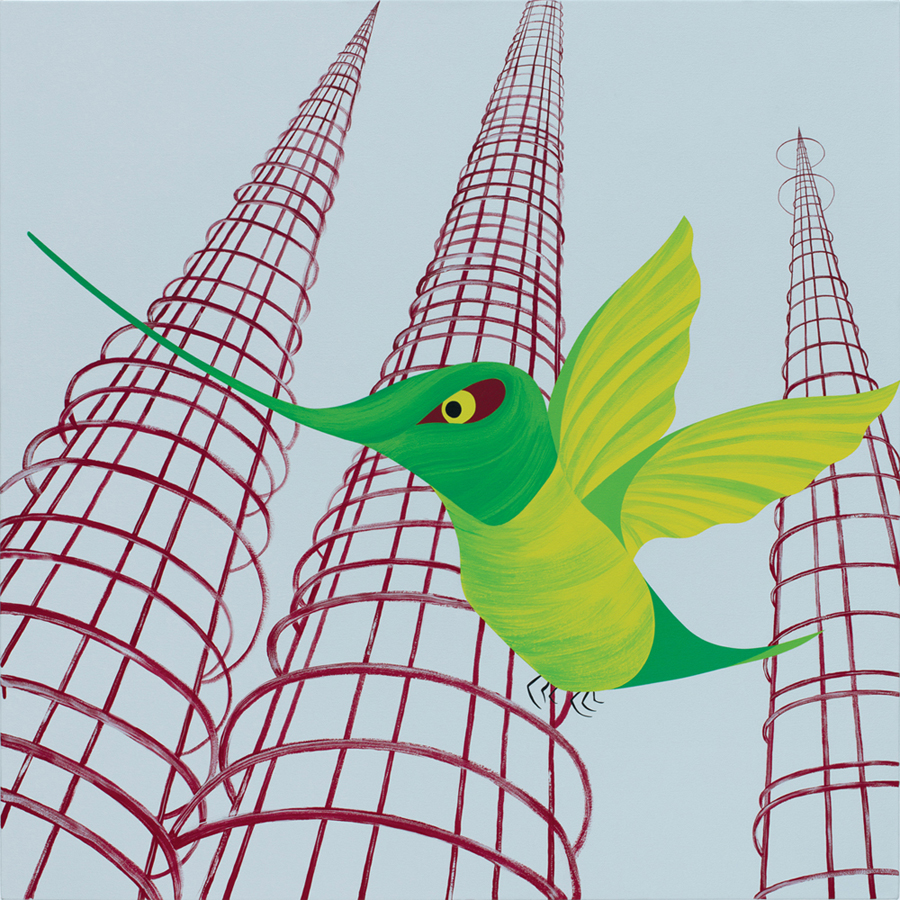 The Los Angeles of my childhood is intricately woven into the Los Angeles of the present in the Predators paintings. The title refers both to the predatory nature of local wildlife, as well as the threat of urban development and the loss of their habitats. In Predators, graphic depictions of wildlife are presented among a variety of historic locales. I consider my Predators portraits and present them straightforwardly. Their gaze is oblique, their confrontation with the viewer unflinching and their presence - like the past – uncompromising. It might be argued that these mostly nocturnal creatures serve as stand-ins for any city resident attempting to co-exist with a disappearing homeland.
