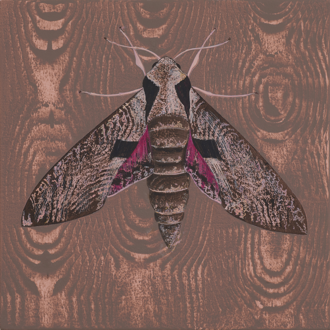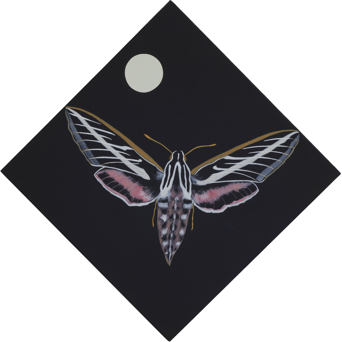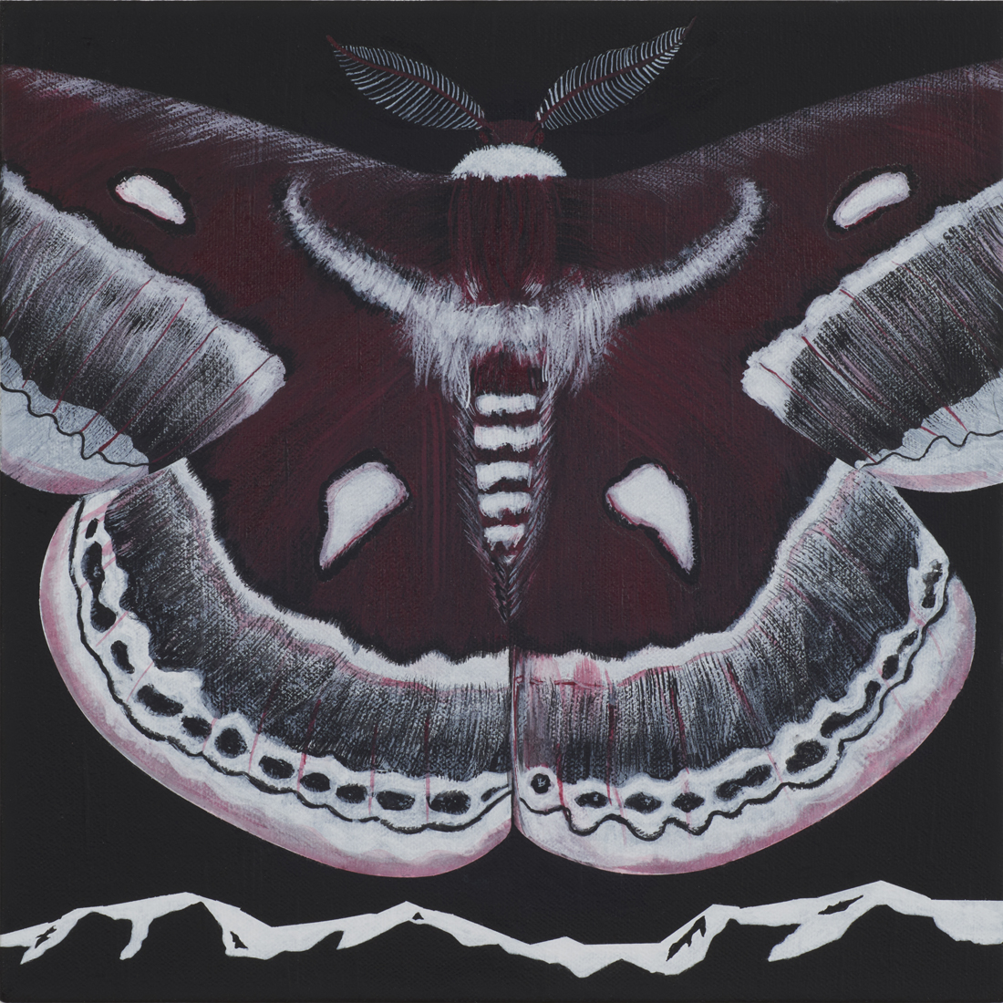 Moths, though great pollinators, and surprisingly beautiful, are traditionally associated with the dark of night. In these paintings, they serve as portents of death and destruction.