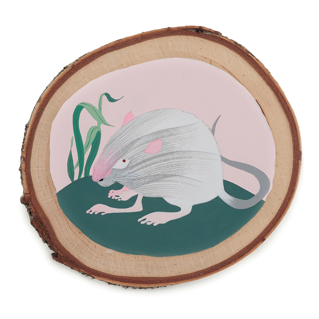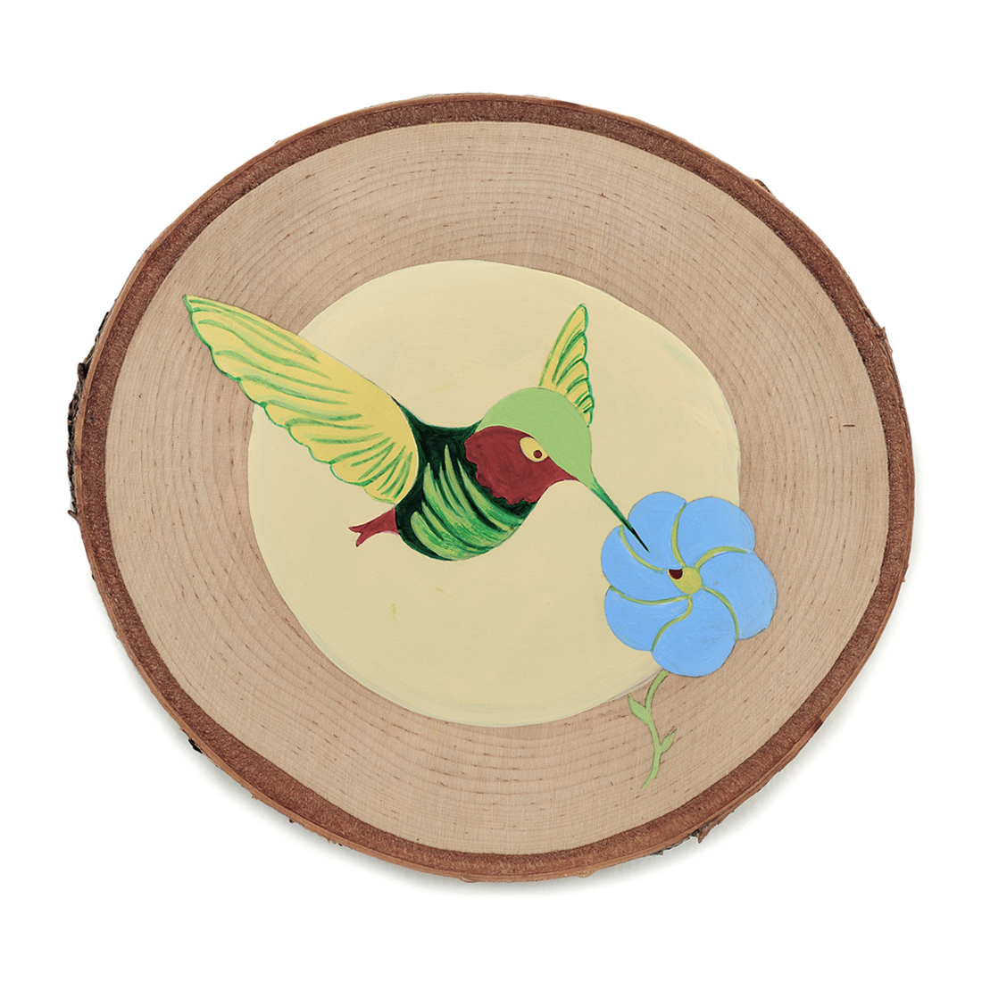 All paintings are acrylic on birch, aspen, rowan, linden or jacaranda wood. Round shapes range from 5.5 to 7.75 inches in diameter. Ovals range from 5 to 15 inches in height x 5 to 38.5 inches in width.