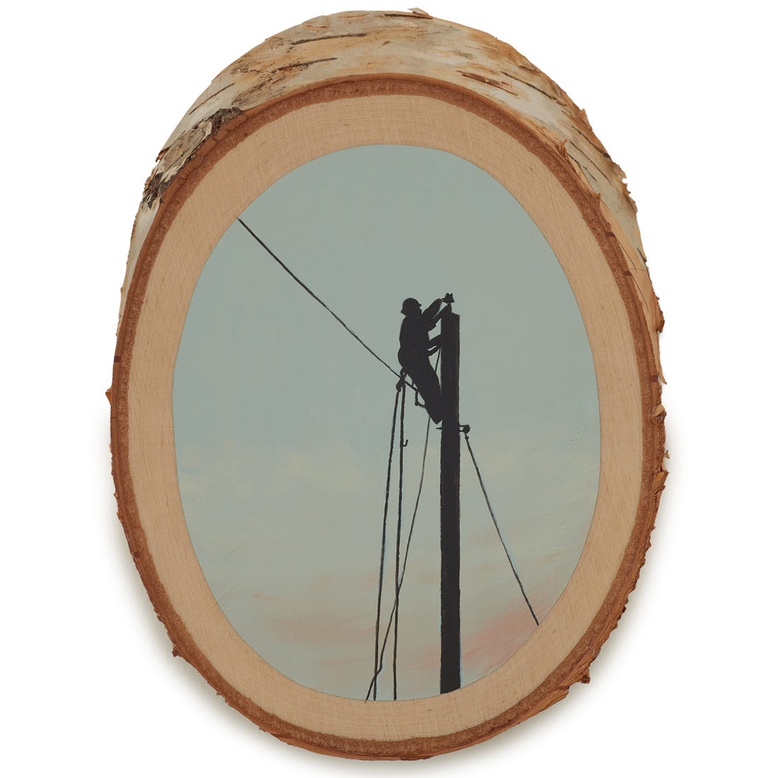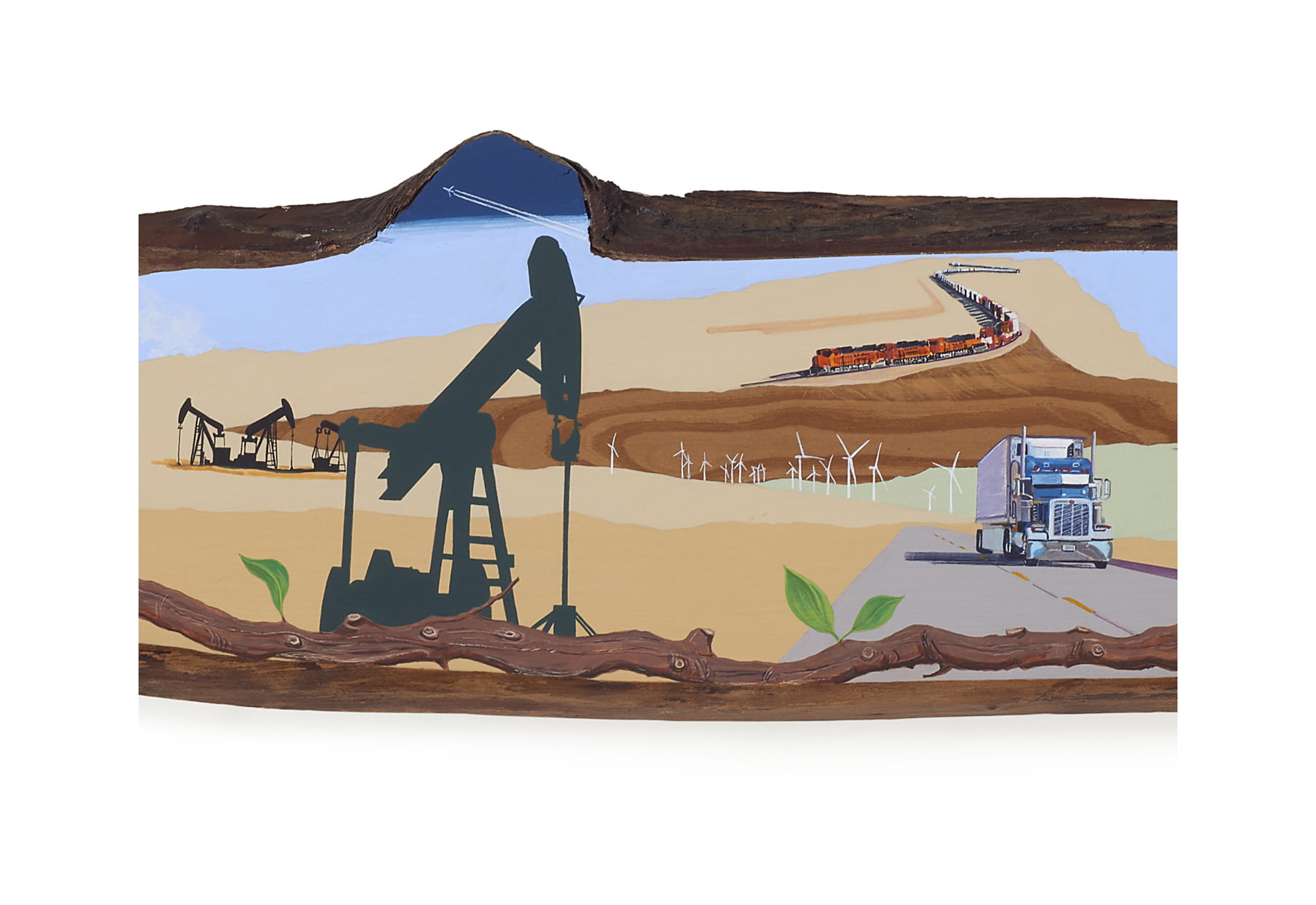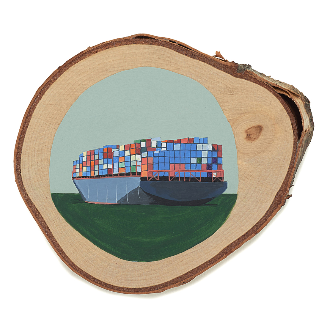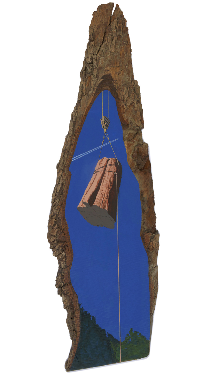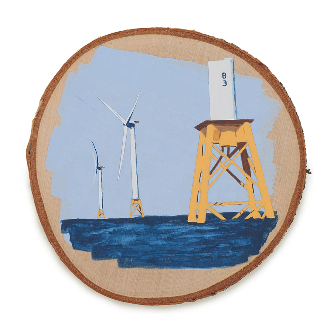 The wood slice paintings are reminiscent of souvenirs travelers once purchased as mementos of their road trips. These “souvenir” portraits document life in rural California. They depict the agricultural, industrial and recreational landscape, as well as the wildlife whose habitats shrink as this landscape changes. The narrative that runs through these paintings is the story of my community.