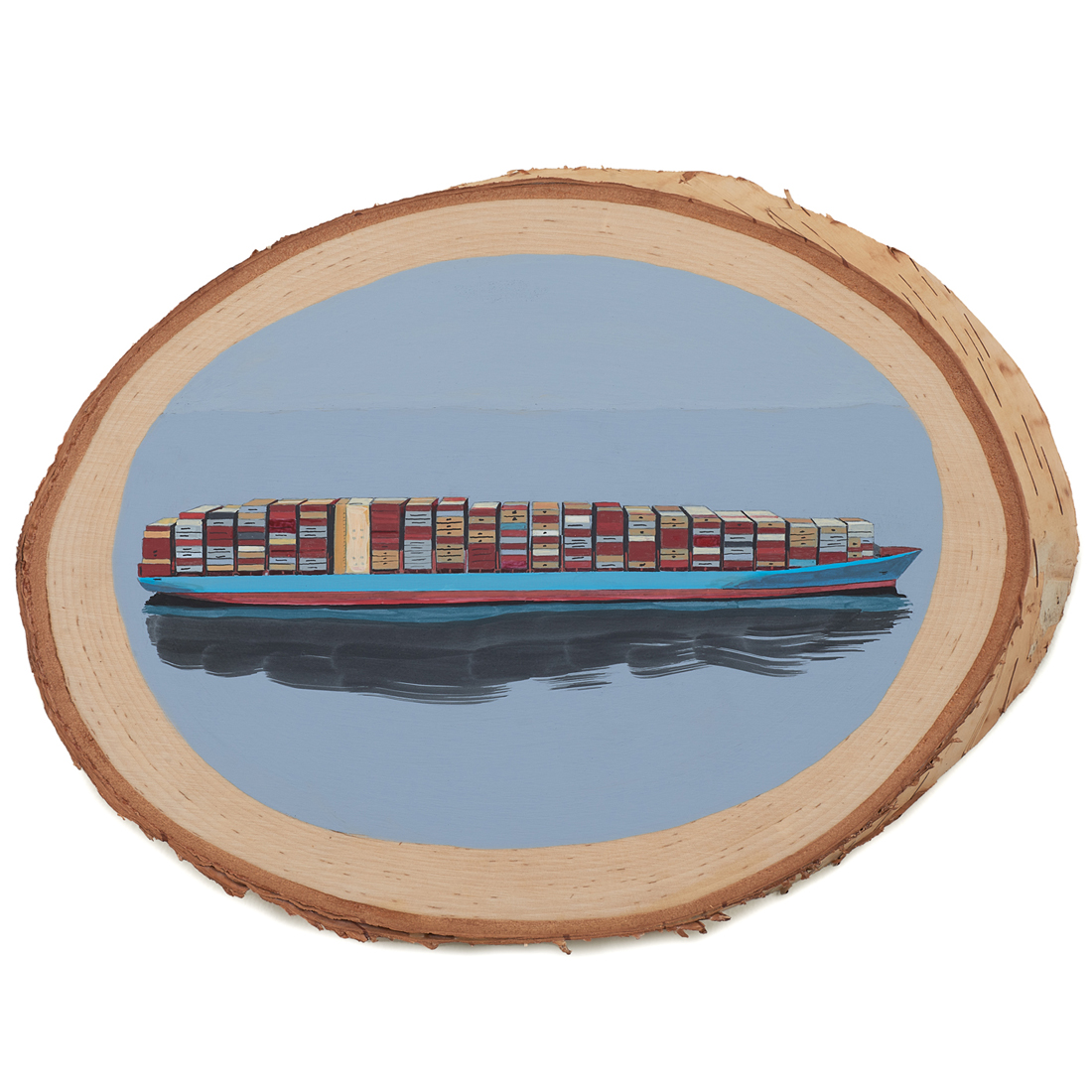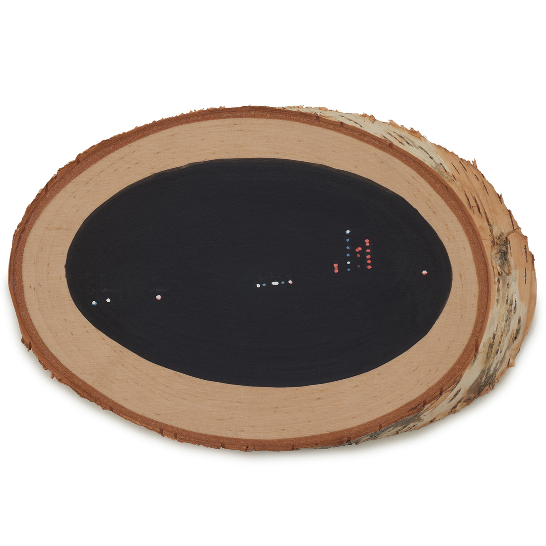 All paintings are acrylic on birch, aspen, rowan, linden, jacaranda or olive wood. Round shapes range from 5.5 to 7.75 inches in diameter. Ovals range from 5 to 44 inches in height x 1.75 to 55 inches in width.